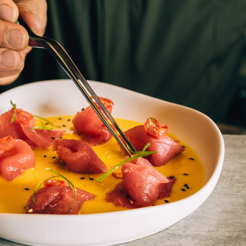 “AMANCAES” es la flor de Lima, símbolo de belleza y relevancia histórica, es evocar la vibrante felicidad que reunía a peruanos e inmigrantes en las pampas de Amancaes a celebrar la fiesta de San Juan, un lugar donde se compartía costumbres culturales y gastronómicas. Inspirados en ese evento de unión y celebración, Amancaes representa esa fiesta cultural buscando un balance gastronómico entre Perú y el Mediterráneo.